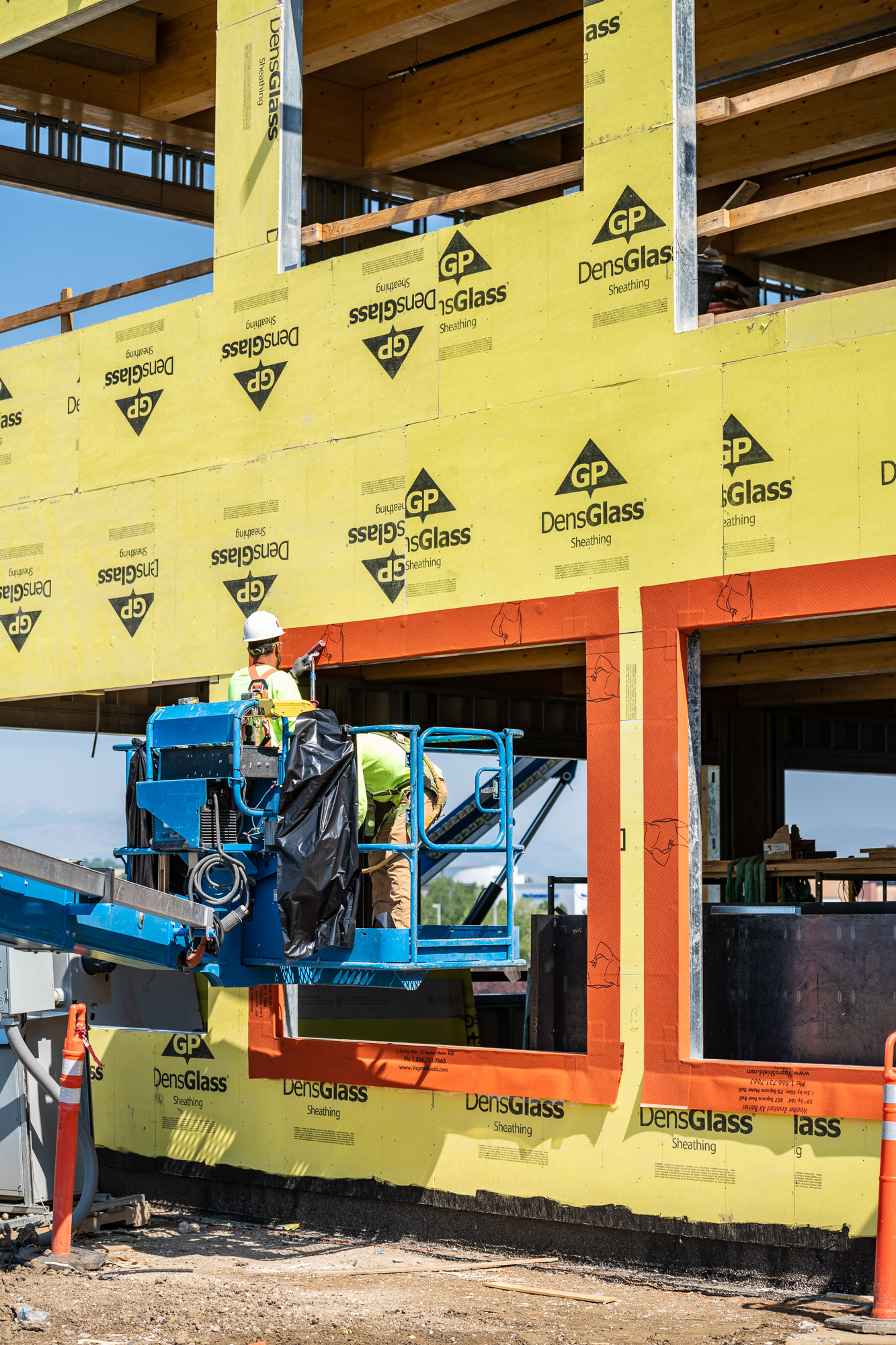 Over 40,000 sq. ft. of WrapShield SA Self-Adhered was installed on the Viega LLC headquarters in Broomfield, CO. The innovative building features a structural system of cross laminated timber (CLT), a renewable wood-based material that is quickly gaining market traction due to its strength, versatility, and sustainability.